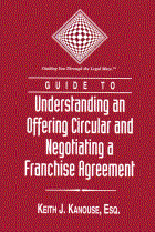 UNDERSTANDING AN OFFERING CIRCULAR & NEGOTIATING A FRANCHISE AGREEMENT, Kanouse, 1995. 159 pp. $21.95. Item # 19. Allows you to better understand and evaluate the information in the franchisor's Uniform Franchise Offering Circular (UFOC). Discusses 62 legal and business issues which should be "negotiated" in a franchise agreement to make it fairer from a franchisee's standpoint. With an understanding of the key underlying issues, you will be better able to communicate with your own franchise attorney. |